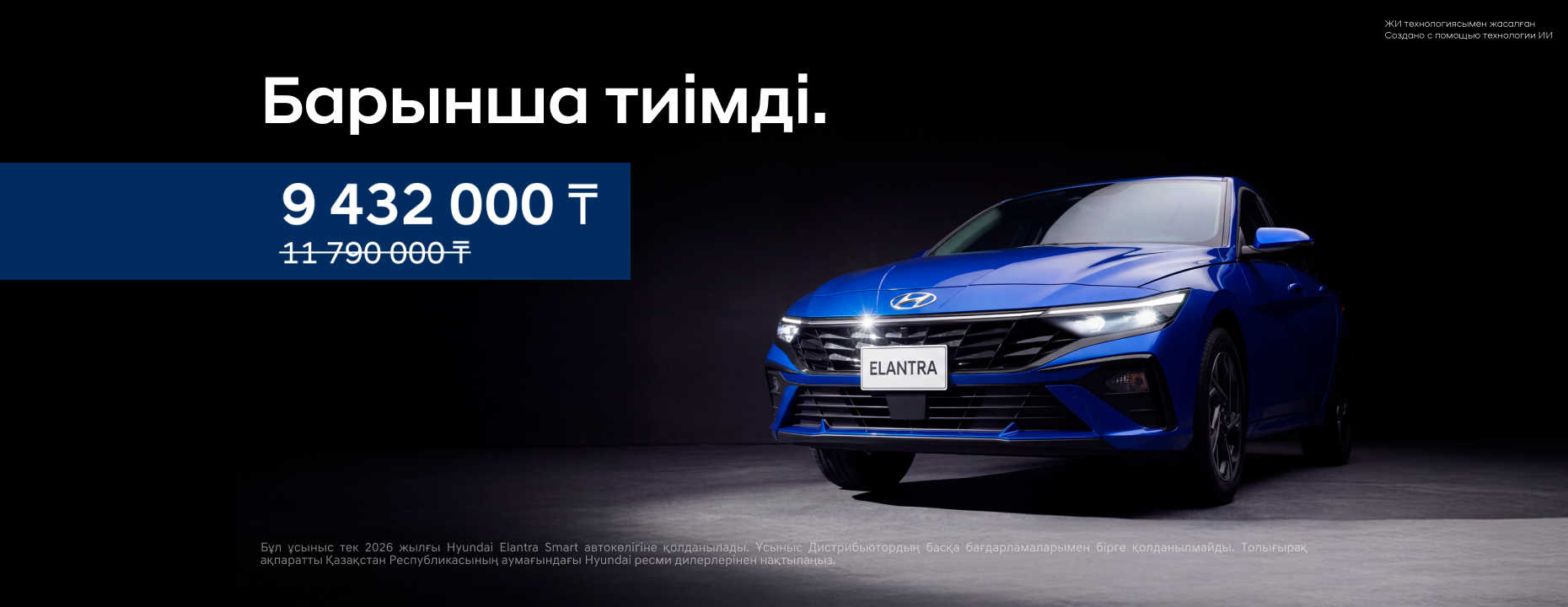 | Elantra 1.5 | 9 432 000 ₸ бастап | 2 478 000 ₸ дейін |