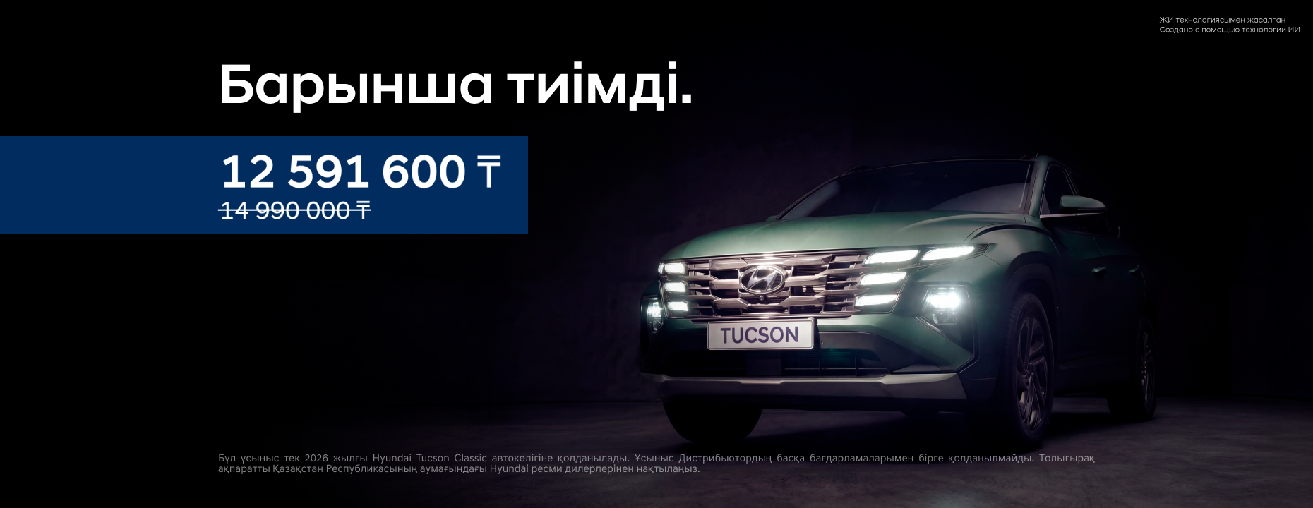 | Tucson | 12 591 600 ₸ бастап | 2 952 600 ₸ дейін |